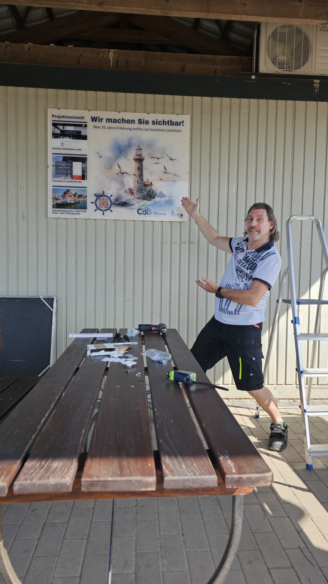 Die Anbringung des Werbeschilds bei Hafenmeister Axel ist für uns ein bedeutender Schritt und ein Zeichen für die erfolgreiche Zusammenarbeit mit der Marina Wieltsee. Doch dies ist nur der Anfang! Wir freuen uns darauf, viele weitere spannende Projekte in der maritimen Welt zu realisieren und gemeinsam mit unseren Partnern die Sichtbarkeit und Präsenz am Wasser zu stärken.