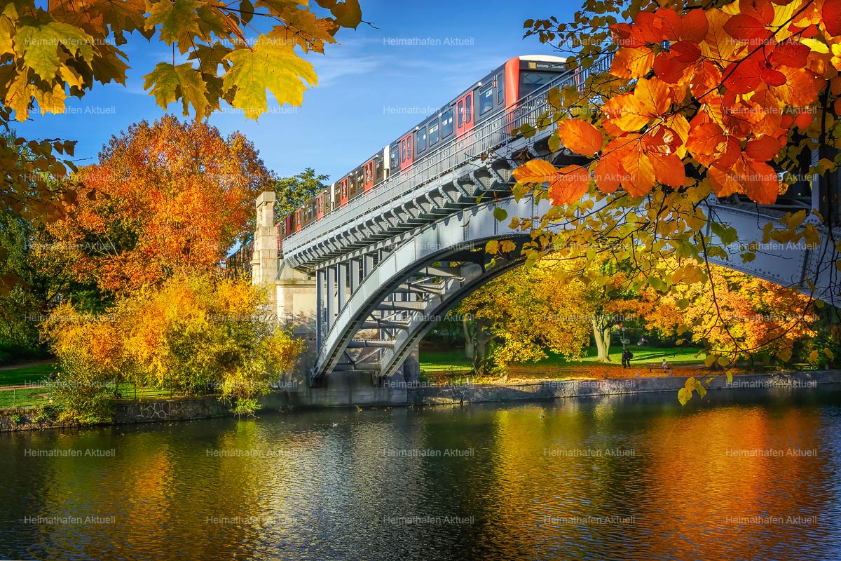 Hamburger Hochbahn im Herbst nahe UBahn-Station Uhlandstrasse